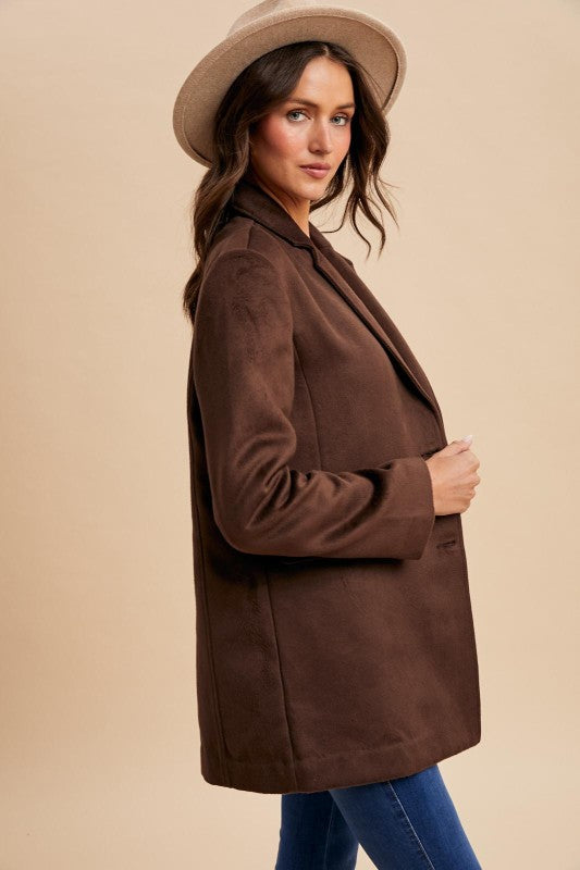 • The oversized fit makes it ideal for layering over knits, dresses, or tailored pants.