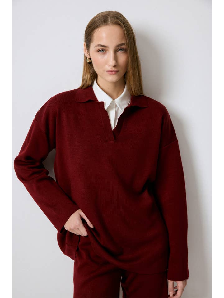 The rich maroon color adds warmth and sophistication to any wardrobe.