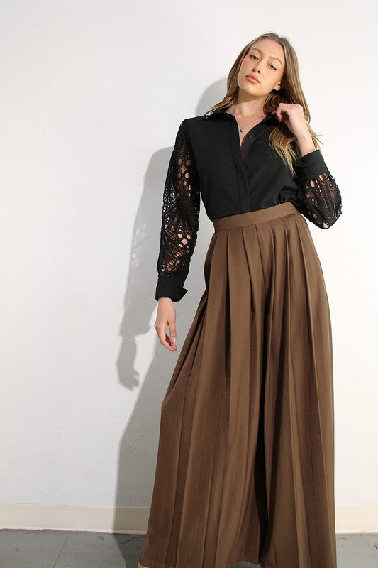 Sophisticated wide-pleat pants with a tailored front and elegant flow