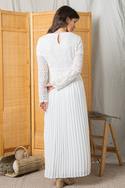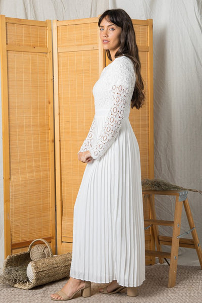 LACE TOP MAXI DRESS. ROUND NECK With BACK KEY HOLE DETAIL. True to size. MODEL IS 5'8" (32-24-34) WEARING A SMALL